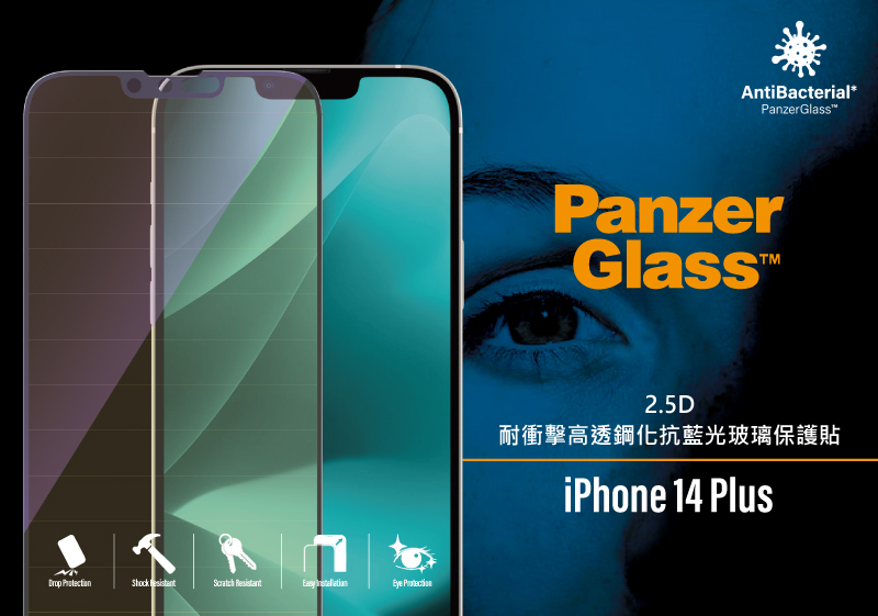 PanzerGlass iPhone 14 Plus 2.5D耐衝擊抗藍光玻璃保護貼-黑