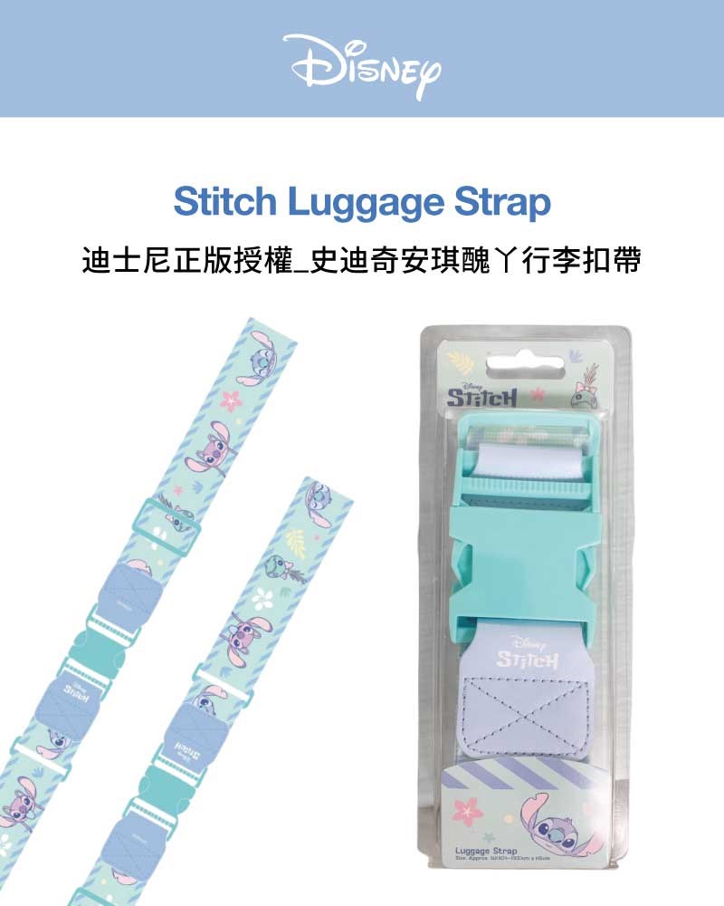 EverWin 迪士尼正版授權_史迪奇安琪醜ㄚ扣具行李束帶 (淺藍)