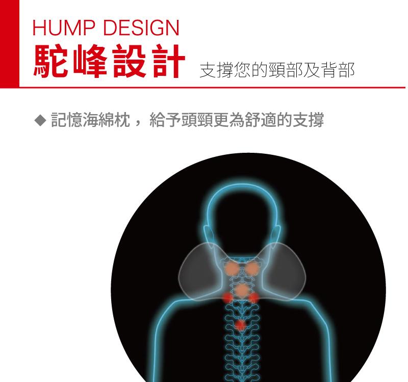 ◆ 記憶海綿擬駝峰造型設計,讓你頸部被支撐時能更加舒適,可當靠墊及趴枕使用